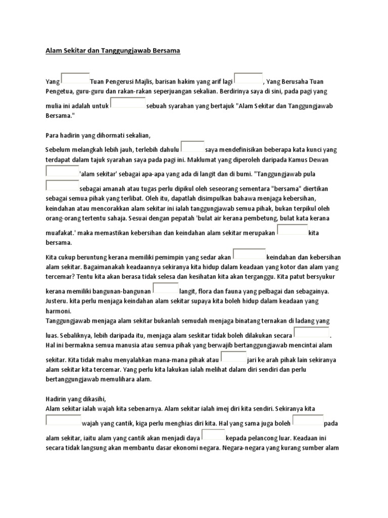 Di sini kita dapat menterjemahkan alam sekitar itu dengan 2 perkataan berbeza. Alam sekitar memainkan peranan penting dalam kehidupan harian kita alam sekitar yang tidak tercemar memberikan kita satu suasana yang selesa dan menyamankan. Alam sekitar merangkumi beberapa kompenen utama. Alam sekitar memainkan peranan penting dalam kehidupan harian kita alam sekitar yang tidak tercemar memberikan kita satu suasana yang selesa dan menyamankan di samping itu ia memberi keselesaan kepada manusia ia juga sedikit sebanyak akan menjejeskan aktiviti aktiviti pembangunan negara sekiranya alam sekitar tidak dijaga dengan baik dalam usaha kita untuk mengejar kemajuan negara kita tidak.