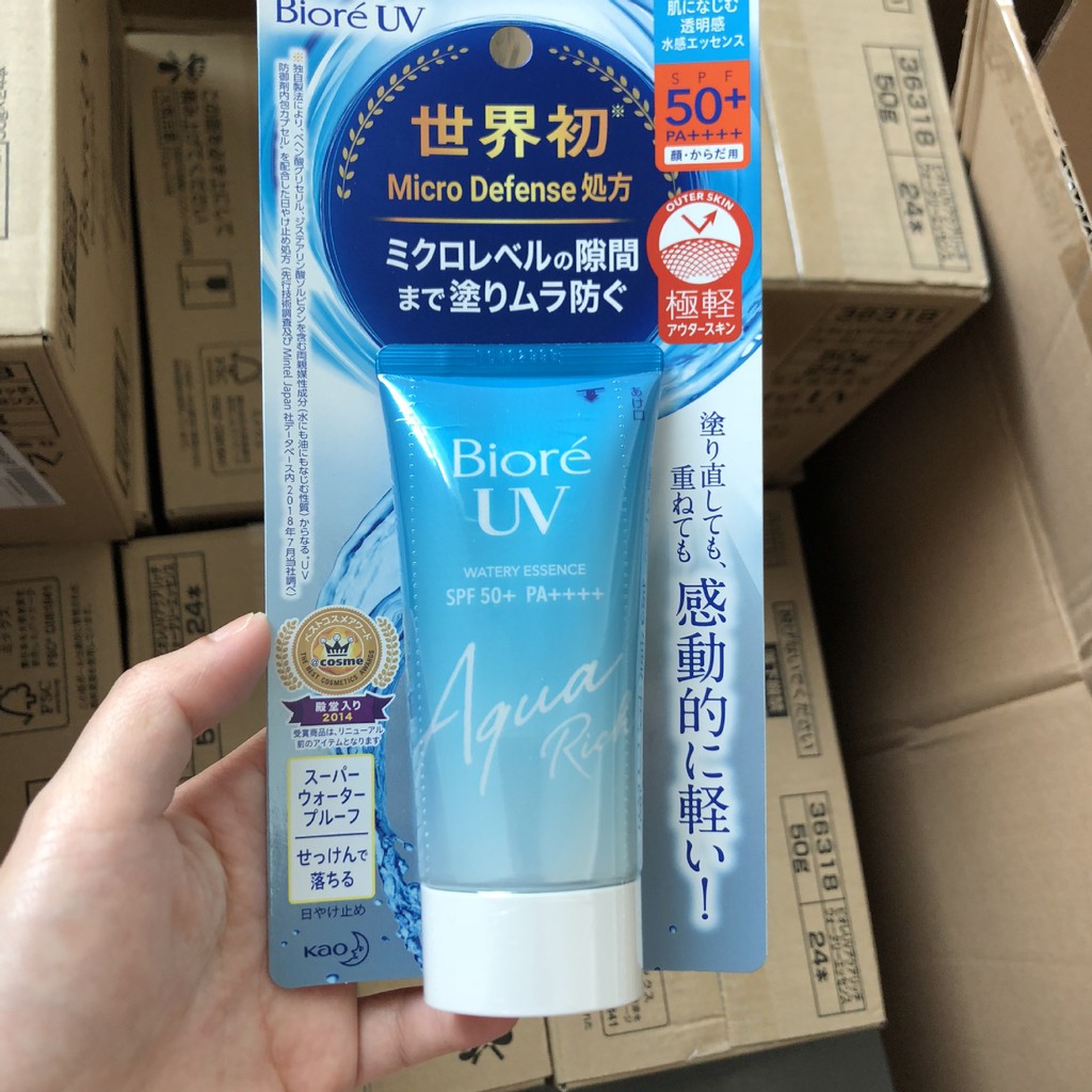 Biore uv aqua rich watery essence 2019. The newly improved sunscreen essence features biore s new micro defense formula that uses 0 2 μm sized micro uv cut capsule and biore s new proprietary ultra light outer skin technology creating a thin and even uv blocking film that adheres uniformly like a second layer of skin down. Hello as the title suggests there is going to be a reformulation of biore uv aqua rich watery line news release and it says on the website that the new improved products will be sold in japan starting from 9th february 2019 priced at 950 jpy rrp. Kao biore uv aqua rich watery essence spf 50 pa 2019 edition final clearance spring festival mini travel size quantity discount this updated version of biore s most loved uv aqua rich watery gel spf 50 pa is powered by the innovative micro defense formula to prevent uneven application. Sun care biore 2019 aqua rich watery essence uva concern.