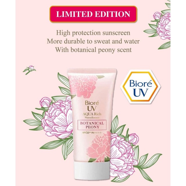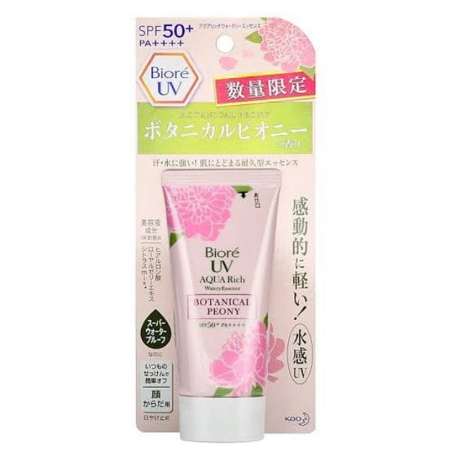 Biore uv aqua rich watery essence botanical peony. The price is almost the same. Jadi kalau nggak segera re apply sunscreen muka tuh jadi. Aku gasuka bgt. Shopee ความงามและของใช ส วนต ว ผล ตภ ณฑ ด แลผ วหน า ก นแดด biore uv aqua rich watery essence botanical peony spf50 pa limited edition 50 g.