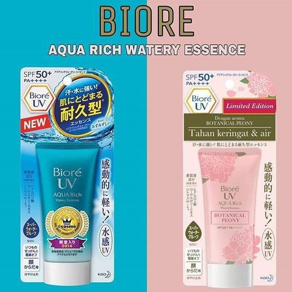 See the list below for details. Community collections with biore uv aqua rich watery essence spf50 pa 2017 version already tryed 11 products. Kandungan bahan yang dipakai tergolong ringan sehingga tetap nyaman selama beraktivitas sehari hari. Biore uv aqua rich watery essence botanical peony ini no white cast no greasy dan no oxidize.