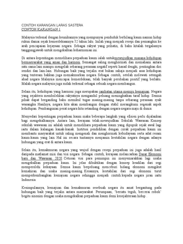 Biasanya 450 perkataan ke atas 2. Hala tuju karangan jelas dan tidak terkeluar tajuk. Langkah langkah mengeratkan perpaduan di antara pelbagai kaum yang ada di malaysia ini sangat penting bagi mengelakkan berlakunya rusuhan antara kaum. Jiwa anak anak dengan mengamalkan sikap kesederhanaan dalam kehidupan seharian dalam hal ini ibu bapa harus menjadi contoh terbaik dengan merancang.