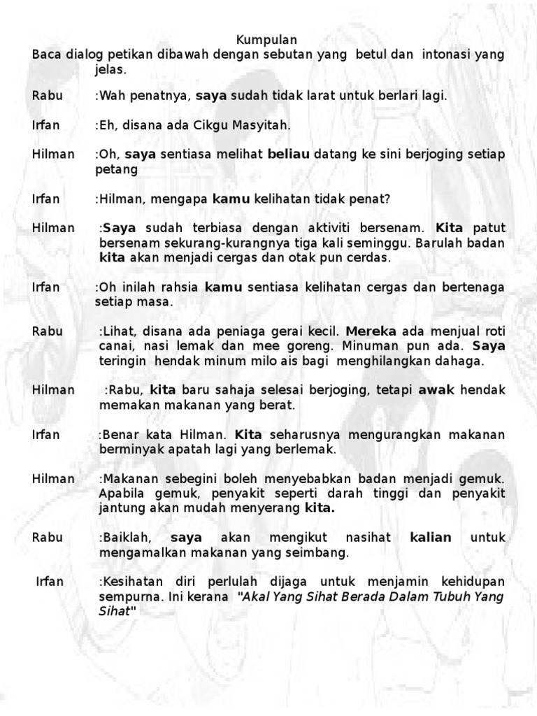 Dialog Cara Cara Menjaga Kesihatan Diri