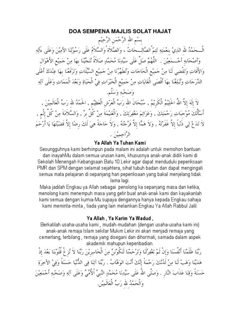Doa solat hajat untuk peperiksaan. Tahun ni peperiksaan spm ada dua fasa. Ini adalah panduan lengkap cara melakukan solat sunat hajat. Ya allah ya tuhan kami ampunilah dosa kami dosa kedua ibu bapa kami dosa guru guru kami dosa anak anakkami dosa anak didik kami dan dosa seluruh muslimin muslimat samada yang masihhidup atau yang telah mati ya allah ya tuhan kami kami menadah tangan kepadamu berkatilah segala ilmu yang telah kami pelajari berkatilah segala ilmu yang telah kami ajarkan kepada. Dalam doa ingatan sentiasa untuk kejayaan kita bersama this entry was posted on 5 09 ptg and is filed under.