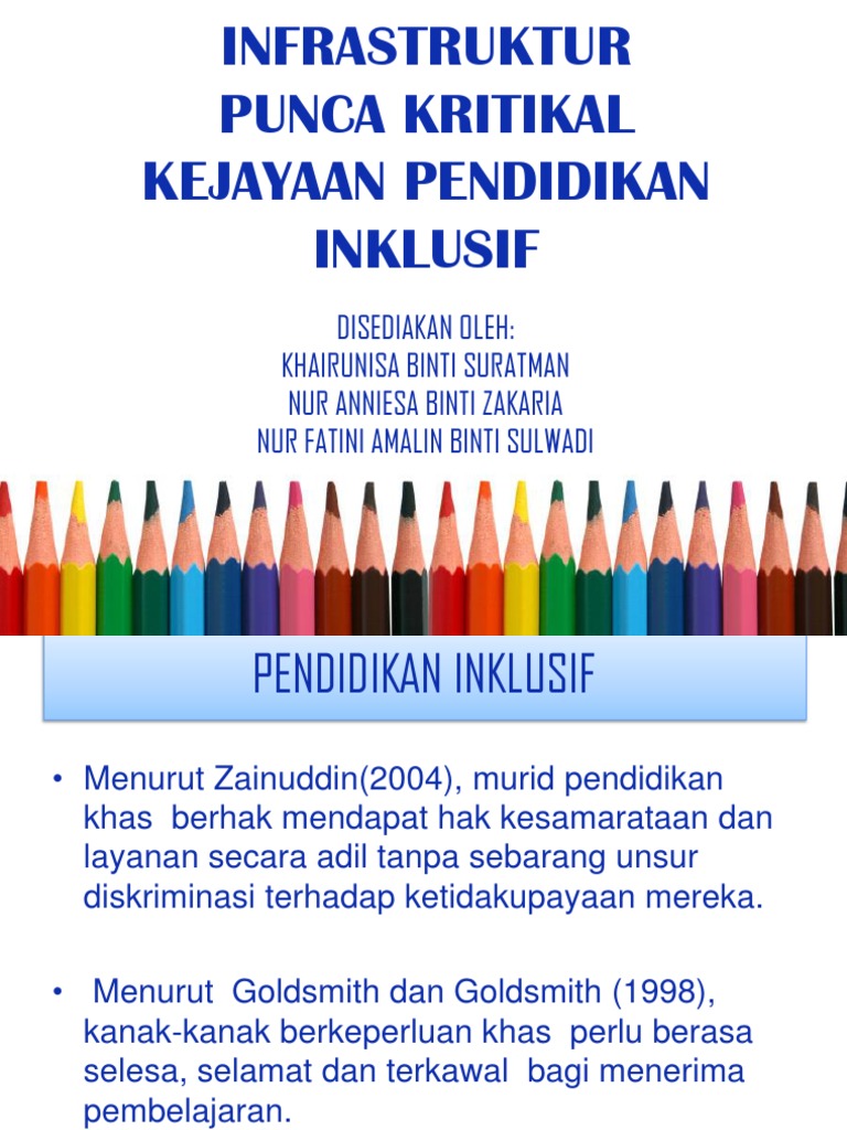 Faktor kritikal kejayaan pendidikan inklusif pdf. Jadual 3 1 sampel kajian di sekolah a bil. Olifia rombot s sos m pd. View m5 faktor kritikal kejayaan pendidikan inklusif pptx from cis misc at ipg kampus bahasa melayu. Keyakinan bahwa pendidikan inklusif akan mengarah kepada sebuah masyarakat inklusif dan akhirnya kepada keefektipan biaya.