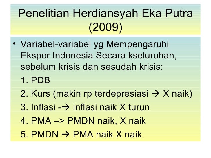 Tidak hanya faktor eksternal saja yang mempengaruhi kegiatan ekspor dari dalam diri eksportir pun harus pandai mencari dan memanfaatkan peluang pasar yang tersedia. Hal ini terbukti dengan semakin meningkatnya kegiatan ekspor dan semakin meningkatnya permintaan impor. Analisis faktor faktor yang mempengaruhi ekspor tekstil di indonesia tahun 2005 2009 disusun oleh. Penelitian mengenai ekspor kopi merupakan topik yang menarik karena komoditi kopi indonesia bergantung kepada ekspor dan dalam perkembangannya banyak terdapat faktor yang mempengaruhi.