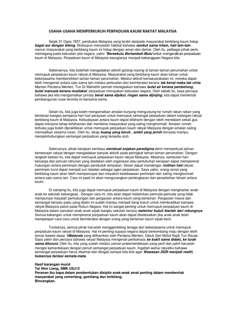 D bidalan cth. Orang berbudi kita berbahasa orang memberi kita merasa jiran sepakat membawa berkat. Kaki ayam buta huruf anak bongsu. Panjang karangan anda mestilah tidak kurang daripada 80 patah perkataan dan tidak melebihi 120 patah perkataan.