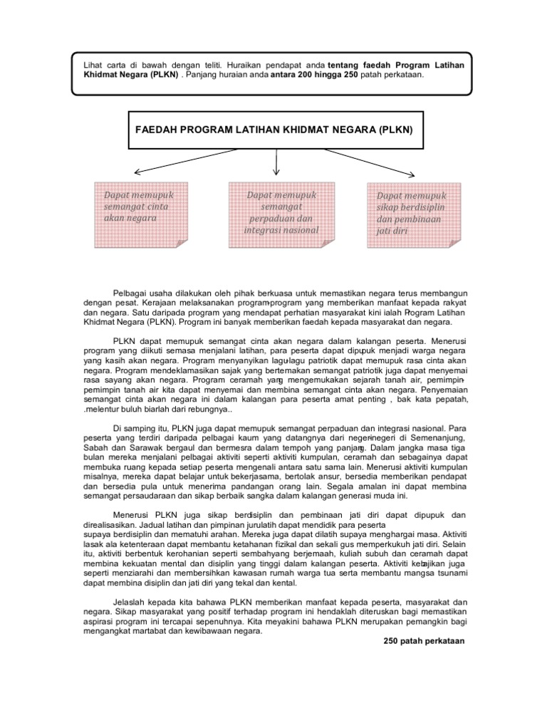 Sekiranya semangat nilai cinta akan negara tidak dapat dipupuk dalam kalangan remaja pastilah mereka tidak ada perasaan cinta akan negara dan menyebabkan mereka hilang jati diri. Sertai kursus intensif karangan a spm 2020 atas talian melalui laman web ini sekarang. Dengan perkara yang dilihat remeh ini penerapan semangat patriotik dalam diri anak anak dapat dilakukan secara halus. Sesungguhnya pemupukan semangat cinta akan negara haruslah diteruskan dalam diri setiap remaja.