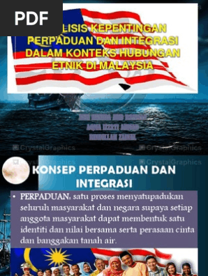Satu bentuk budaya baru dilahirkan dan menjadi milik bersama masyarakat dan budaya berbeza. Ringkasnya perpaduan dan integrasi nasional adalah matlamat asas baginagara malaysia. Melibatkan pertembungan dua atau lebih masyarakat dan budaya. 22 okt 2020 ybhg ketua setiausaha mempengerusikan mesyuarat atas talian bersama team ahli pemikir tap wakil yayasan perpaduan negara dan universiti malaysia kelantan pengarah pengarah perpaduan negeri dan pegawai pegawai kementerian perpaduan negara bagi membincangkan berkenaan pemurnian dasar perpaduan negara.