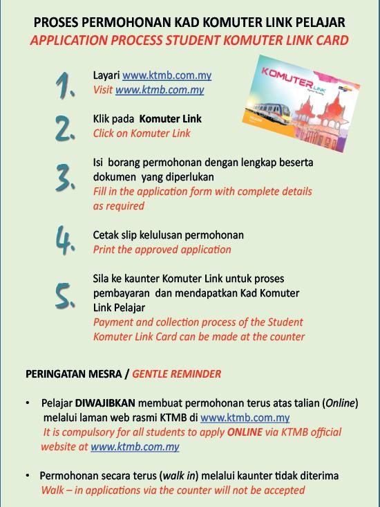 Sekiranya anda pernah membuat pemohonan komuter link secara dalam talian. This is the new card introduced by the ktmb. The fare is deducted from the card s stored value at the exit gate. Komuter link pelajar student diskaun 50 dengan komuter link 50 discount on komuter link.