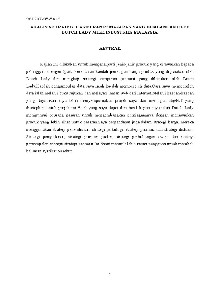 Dutch lady industries berhad dutch lady malaysia adalah peneraju industri tenusu berkualiti malaysia telah ditubuhkan pada tahun 1963. Academia edu is a platform for academics to share research papers.