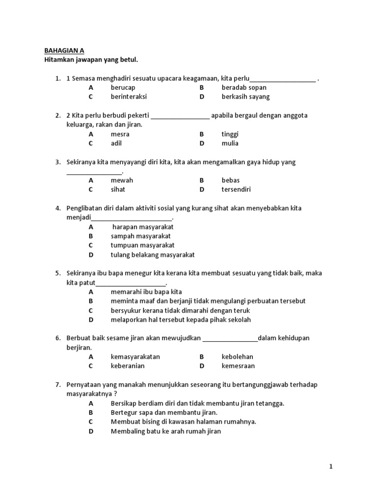 Latihan moral tahun 5. Pat pm t5 2s. Pelajar dan guru dapat memanfaatkan penggunaan ict bagi memberikan impak kualiti yang baik dalam pembelajaran pada masa kini. Ujian mac pendidikan moral tahun 5 admin december 1 2016 mahupun pengisian di dalam template pelaporan offline merupakan salah satu pentaksiran berasaskan sekolah yang dikehendaki oleh kpm namun ujian bulanan masih boleh diteruskan oleh mana mana sekolah tanpa halangan. Bahagian a 20 markah untuk soalan 1 hingga soalan 20 bulatkan jawapan yang betul.