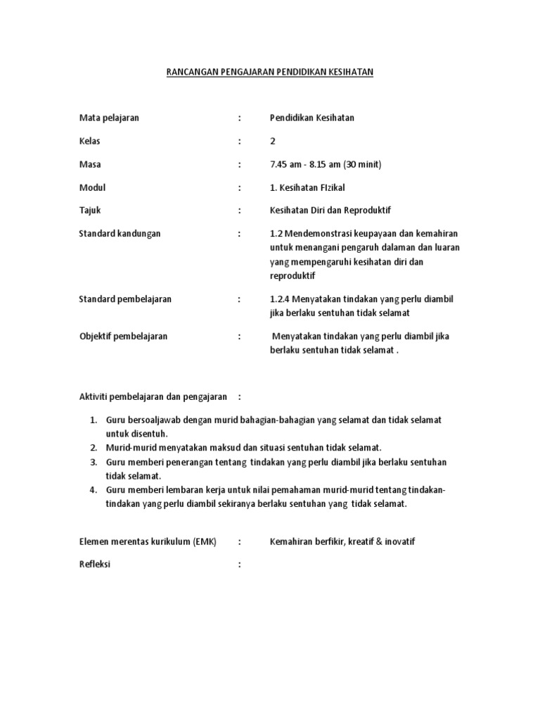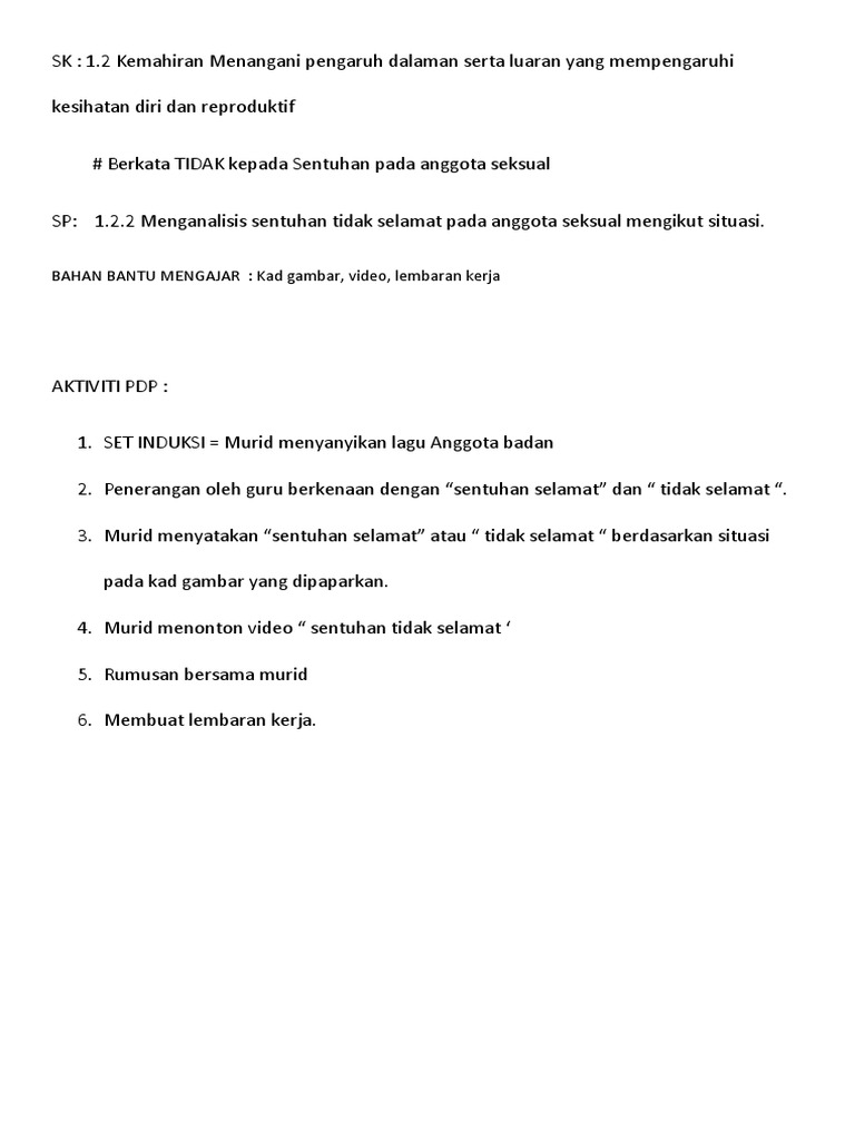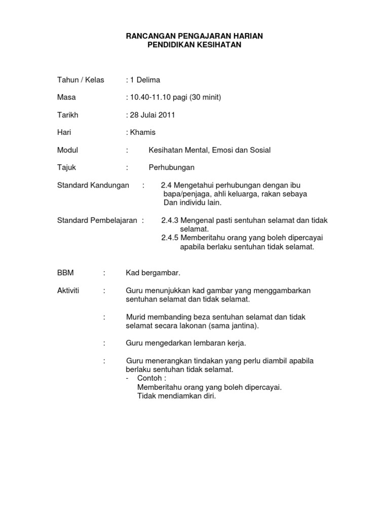 Lampiran guru contoh. Menyatakan maksud sentuhan tidak selamat 5. 28 01 feb. Mengenali bahagian tubuh kepala badan tangan kaki dan genital.