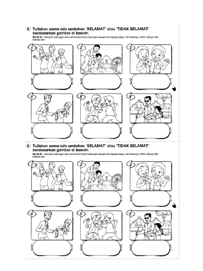 Lembaran kerja 1 nama. Kenal pasti situasi sentuhan selamat dan tidak selamat. Berkata tidak jangan kepada sentuhan tidak selamat. Tarikh sentuhan tidak selamat.