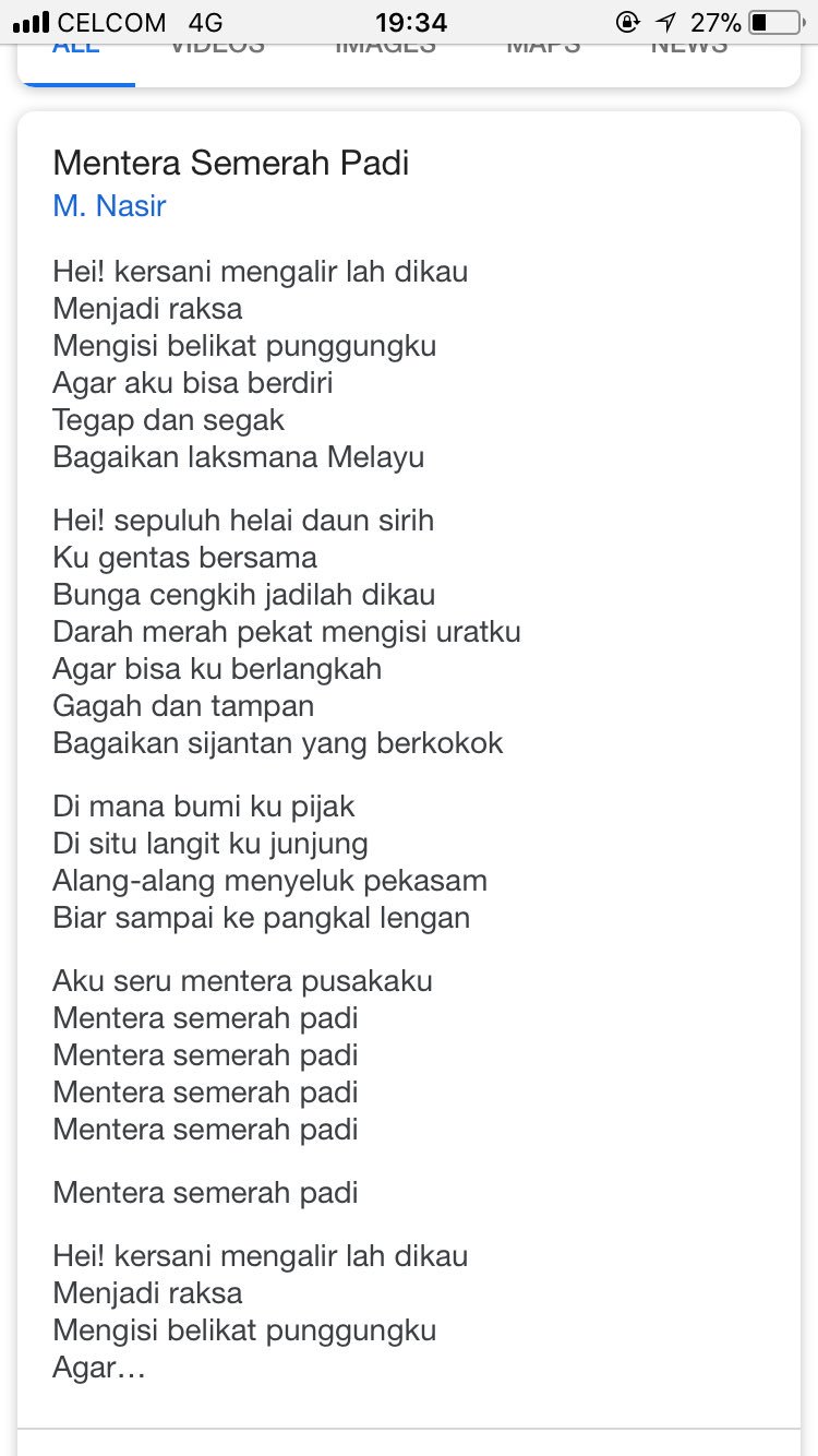Rangkap pertama tujuh puluh tiga pintu tujuh puluh tiga jalan yang sampai hanya satu jalan. Tanya sama itu hud hud lang mensilang kui mengsikui kerna dia yang terbangkan ku ke mari. Share on facebook tweet on twitter plus on google. Namun lagu ini tidak berjaya memenagi anugerah tersebut kerana tewas kepada lagu mentera semerah padi yang juga merupakan lagu yang dinyanyikan oleh beliau.