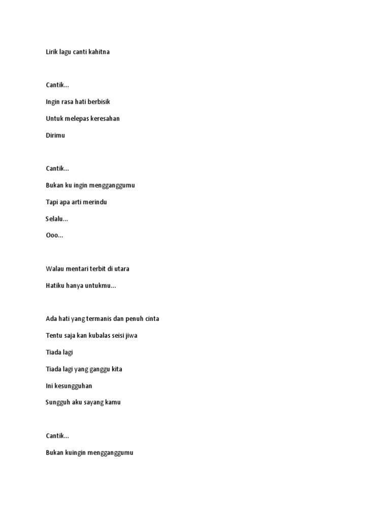 Lirik lagu tiada lagi mayang sari. Calista michael joe lirik lagu serpihan hatiku wali band lirik lagu loro sesigar syahiba saufa lirik lagu dulu kita sayang isty julistry lirik lagu gawe gelo didi kempot lirik lagu hurts so good astrid s. Sia sia sudah kita jalin cinta bila hati s lalu berbeda sampai kapan lagi ku harus menahan rasa kecewa di dalam dada seandainya kita masih bersatu tak mungkin kan menyatu walau masih ada sisa cinta biarkan saja berakhir sampai di sini tiada lagi yang kuharapkan tiada lagi yang kuimpikan biar aku sendiri tanpa dirimu tiada lagi kata cintaku tak kan lagi ku bersamamu biar kusimpan semua. Tiada ku ragu lagi tuk mengikut mu yesus tiada ku ragu lagi tuk melayani mu walau banyak rintangan dan badaipun menerjang tiada ku ragu lagi untuk selamanya yesus yesus sahabatku penolong dalam hidupku kurindu semua orang mengenal mu engkau jalan kebenaran dan membri hidup yang kekal bagi semua yang percaya pada mu.
