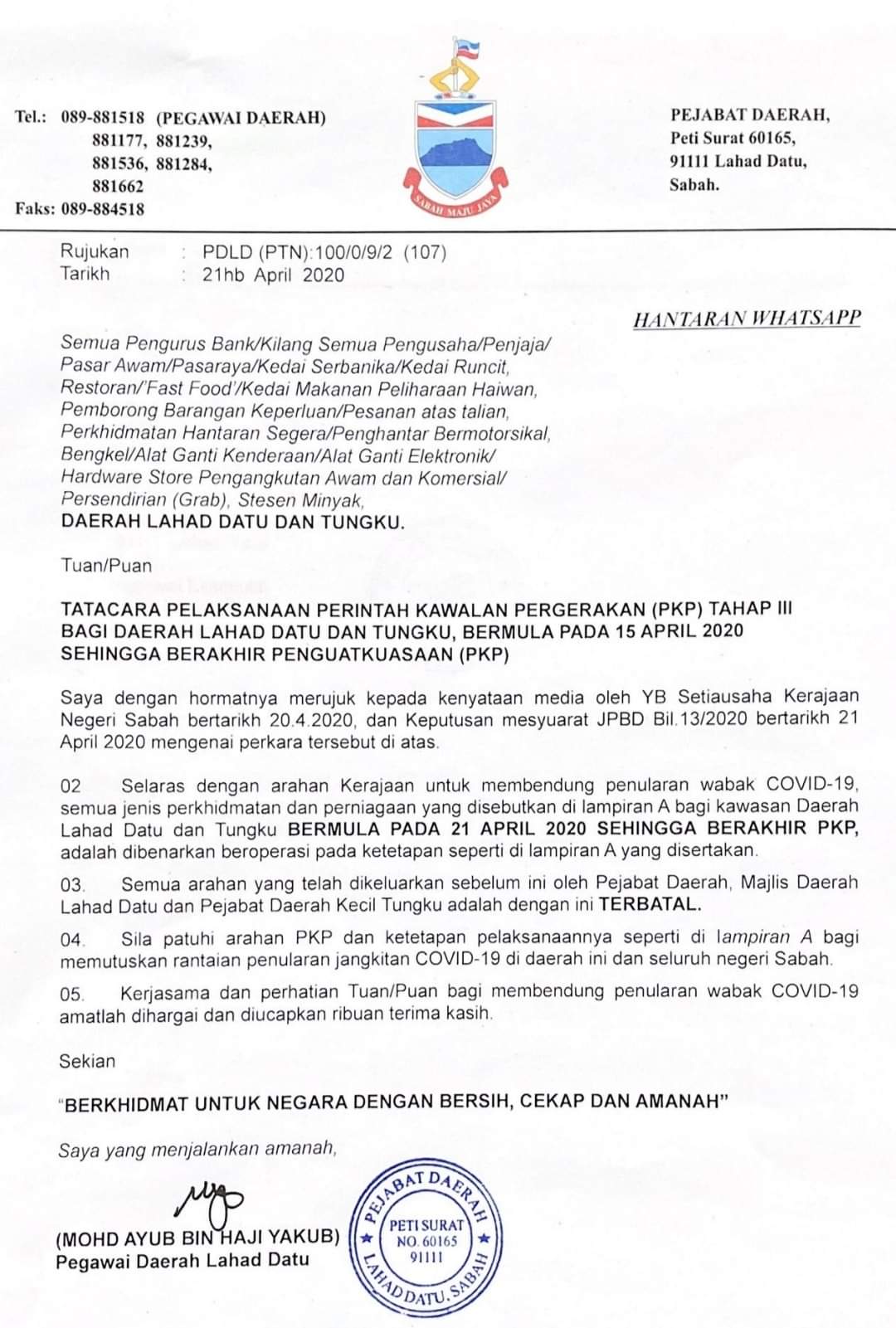 Pejabat daerah lahad datu tingkat 2 bangunan urusetia peti surat 60165 91111 lahad datu tel.