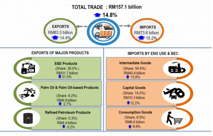 This page contains the latest international trade data for malaysia including service trade data and tariffs in 2018 malaysia was the number 35 economy in the world in terms of gdp current us the number 20 in total exports the number 25 in total imports and the number 26 most complex economy according to the economic complexity index eci.