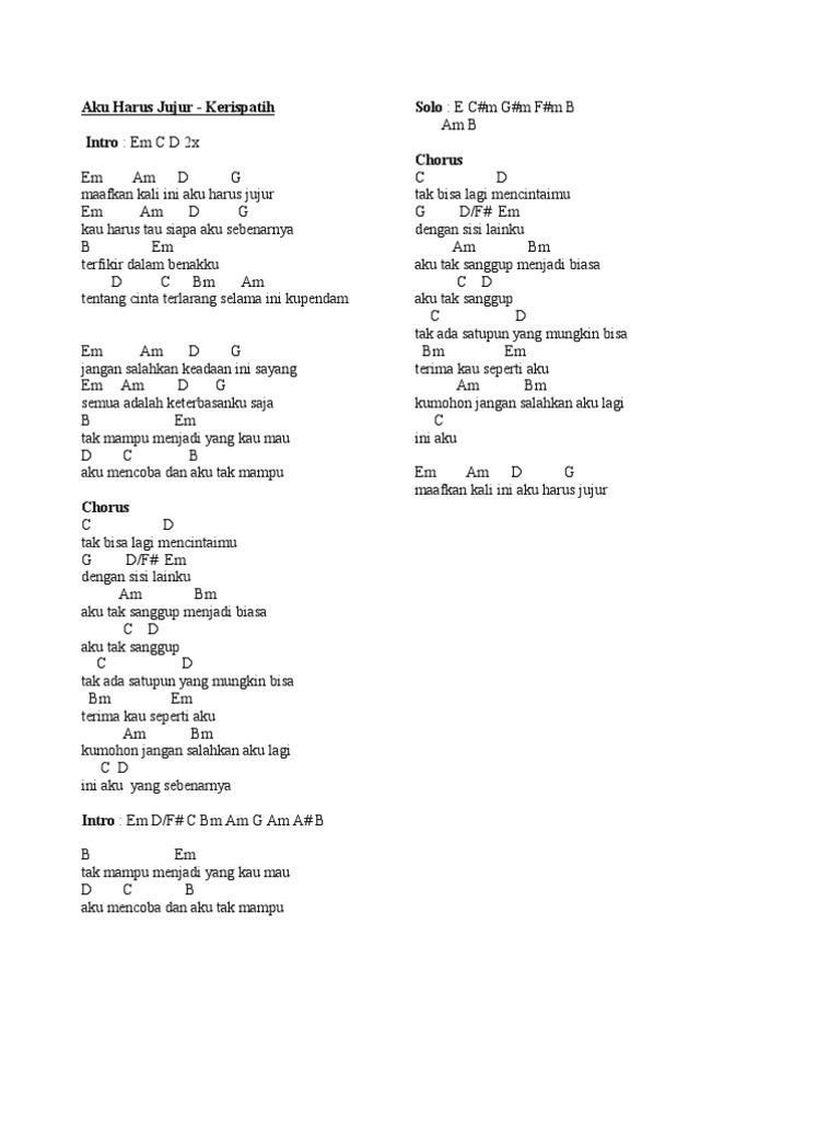 Chord kerispatih tapi bukan aku intro. Dan berharap rasa ini kan dm g abadi untuk selamanya. C f g c jangan lagi kau sesali keputusanku f g c ku tak ingin kau semakin kan terluka f g am dm tak ingin ku paksakan cinta ini f g c meski tiada sanggup untuk kau terima f g c aku memang manusia paling berdosa. Kata padaku f g aku dihidupmu.