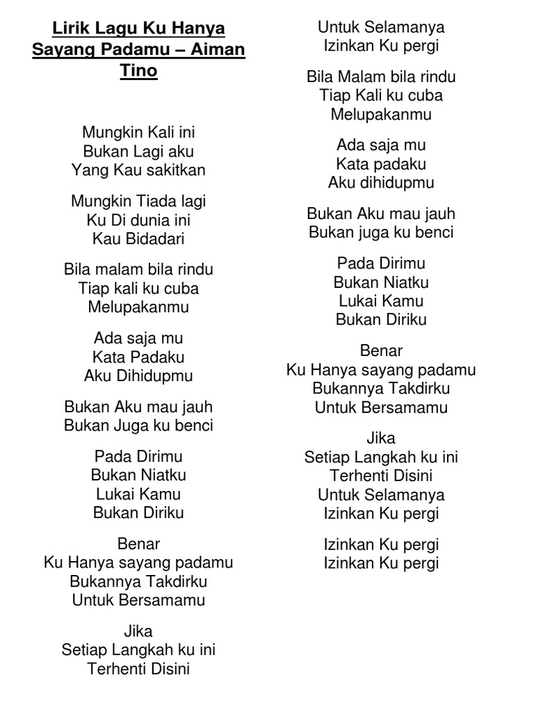 Berikut cuplikan syair nyanyian teks lagunya meski tiada sanggup untuk kau terima aku memang manusia paling berdosa khianati rasa demi keinginan semu sekalipun aku takkan pernah mencoba. Jangan lagi kau sesali keputusanku ku tak ingin kau semakin kan terluka tak ingin ku paksakan cinta ini meski tiada sanggup untuk kau terima aku memang manusia paling. Anggaplah hati dan jiwa yang mencintaimu ini adalah rumahmu sendiri kataku padanya.