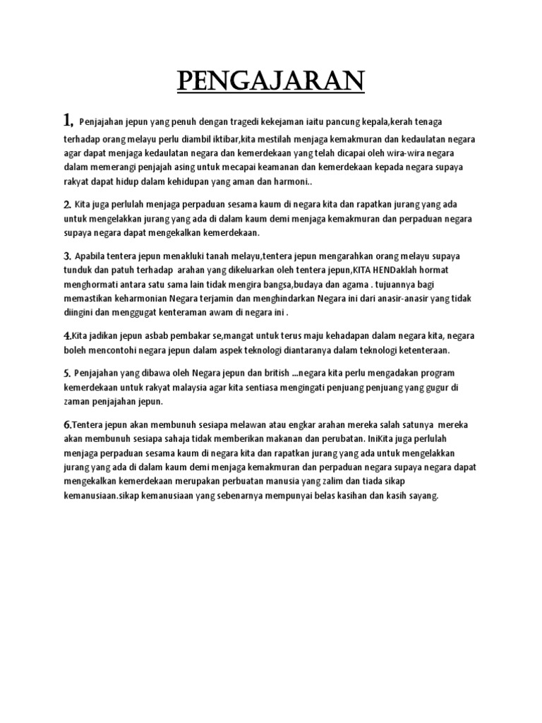 Pengajaran pendudukan jepun di negara kita. Pendudukan jepun di negara kita kesanpemerintahan pemerintahantentera jepun tentera jepunkedatangan jepun politikdasar pemerintahan ekonomi reaksi penduduk sosial 3. Slogan yang dibawa oleh jepun adalah asia untuk orang asia dan ramai penduduk tanah melayu yang terpengaruh dengan slogan tersebut. Huraikan faktor faktor kedatangan jepun ke negara kita. Ini merupakan konsep baru yang tidak pernah terlintas dalam pemikiran orang orang melayu umum pemerintahan oleh bangsa lain selain daripada mereka yang berkulit putih sebelum ini.