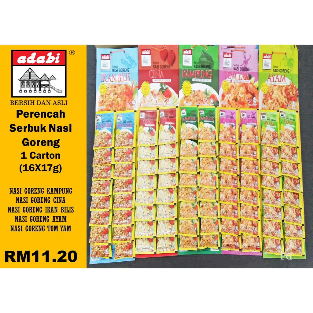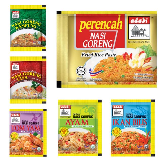 Adabi e mall sdn. Masukkan ayam dan tunggu sehingga kekuningan kemudian masukkan cili kisar secubit garam dan sepaket perencah nasi goreng adabi tumis sehingga naik bau dan garing. Delicious by just plain rice and paste or add egg prawns vegetables chicken etc with the cooking. Can be served at anytimes and anywhere because it pack with small packaging that easy to bring anywhere beside the good taste.