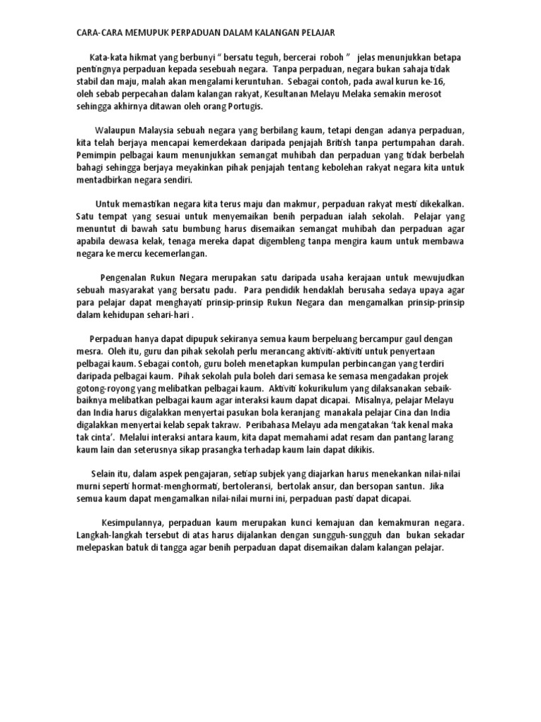 Memang tidak dapat dinafikan bahawa negara pada masa kini sudah berada di peta masyarakat antarabangsa ekoran daripada usaha kerajaan yang berterusan membina negara yang disegani di peringkat dunia. Contoh karangan perpaduan kaum dalam masyarakat. Mereka ini yang hanya melakukan kerja sendiri tanpa mengendahkan persekitaran mereka. Pendahuluan 1 masyarakat malaysia telah diasaskan daripada komponen masyarakat yang terdiri daripada melayu cina india.