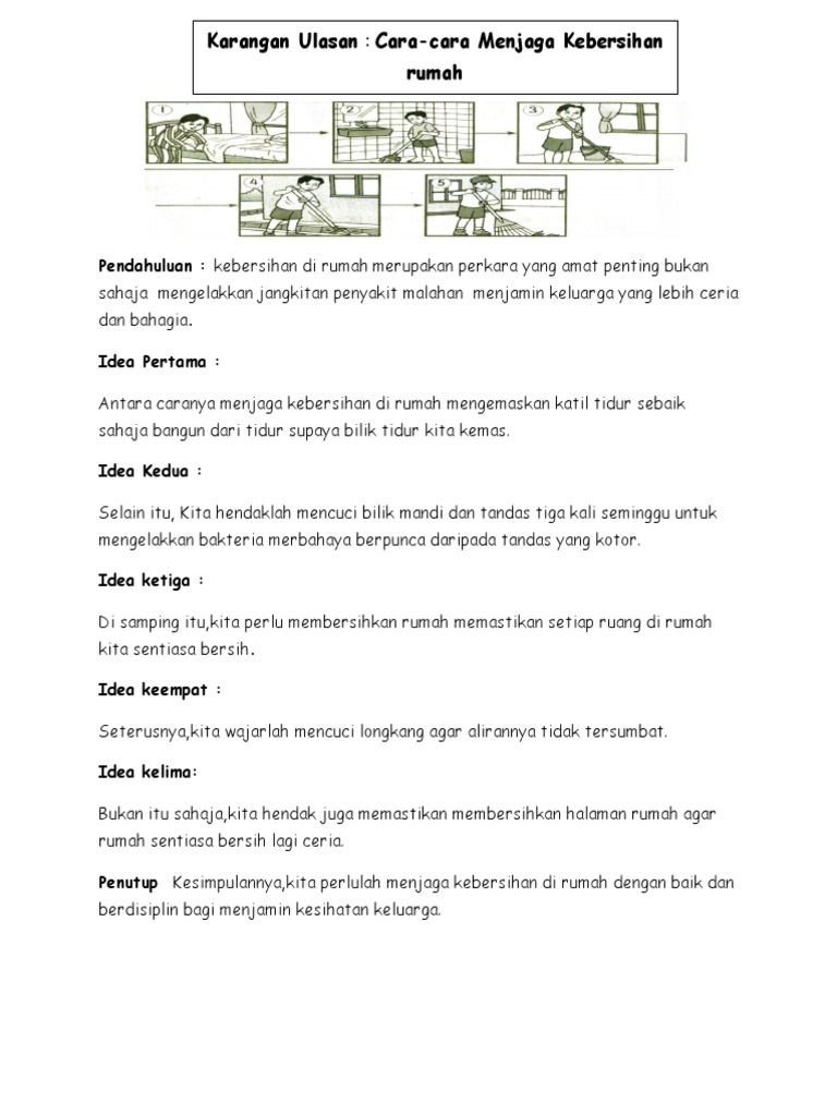 Setiap pihak mempunyai peranan dalam memastikan kesihatan dan kebersihan diri keluarga dan masyarakat berada pada tahap yang baik. Cara yang lebih mudah ialah seseorang itu perlu menjaga kebersihan diri. Aktiviti mandi dan memakai pakaian yang bersih serta memastikan kawasan sekeliling rumah bersih merupakan langkah yang paling praktikal untuk dilakukan oleh sesiapa sahaja. Tulis karangan tentang caracara menjaga kesihatan diri.
